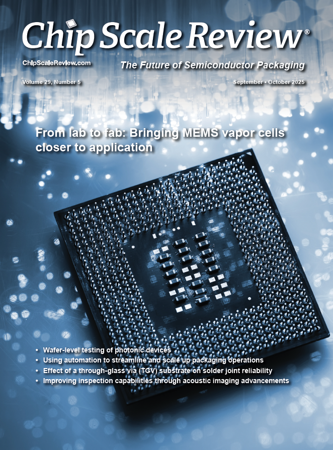 Advanced packaging substrates, such as glass-based interposers combined with automated packaging processes, can overcome manufacturing bottlenecks in photonic component assembly. This approach will enable photonic and electronic co- packaged subsystems to scale to large-volume production. As a result, mass market demands--including data center communications, artificial intelligence, sensing and diagnostics—will be addressed. The cover image shows the packaging of a microlens array to a flip-chip assembled InP photonic integrated circuit on a glass electrical